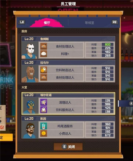 5、拉乌尔也是必备的厨师,因为有他饮料卖的更贵,其他的三个厨师靠料理值确定。