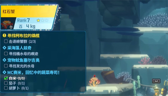 1、首先玩家是需要下到水中去,接着就是在水中抱起石头,对准跳上来的螃蟹。