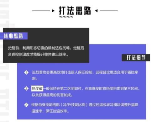 觉醒前,利用形态切换的机制来适应战场,觉醒后合理控制温度才能提升整体输出效率。